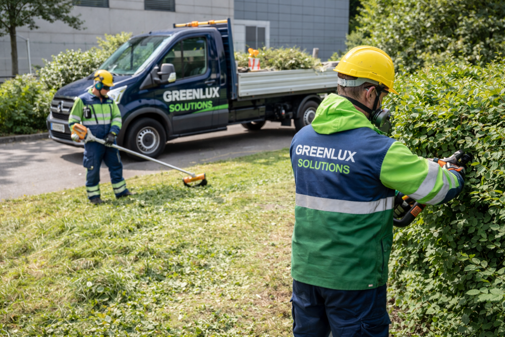 Im Außenbereich übernehmen wir Grünschnitt, Anlagen- und Außenflächenpflege für Industrie- und Gewerbeobjekte, inklusive Zufahrten, Verkehrsflächen und Betriebsgeländen.